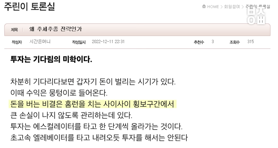 그저 홈런을 치는 사이사이에 손실폭이 최대한 적도록 관리 해주면 된다.