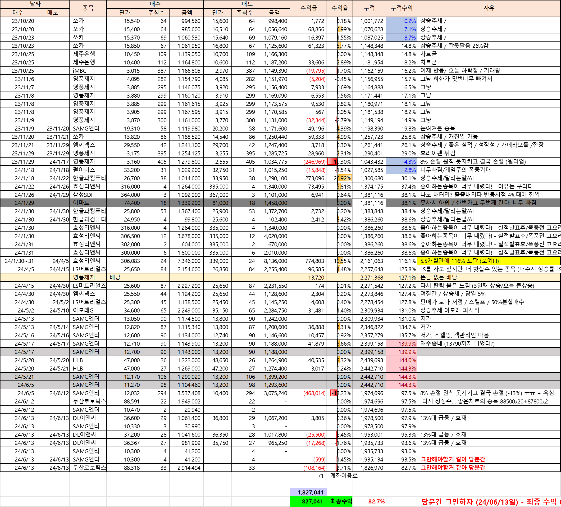 계좌 운영은 23년 10월 20일 부터 진행했으며 오늘이 6월 13일 이니.. 약 8개월 정도 운영한 것이다.
