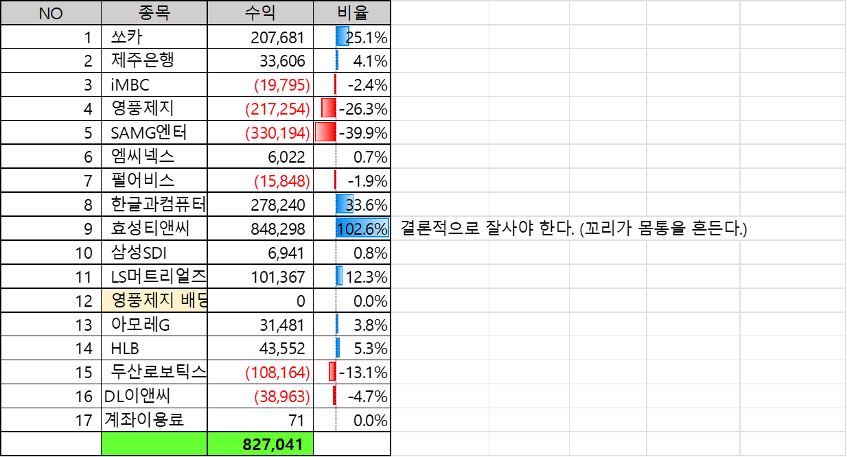 8. 영풍제지에서 큰손실을 봤지만 참고 매도한건 잘했다.